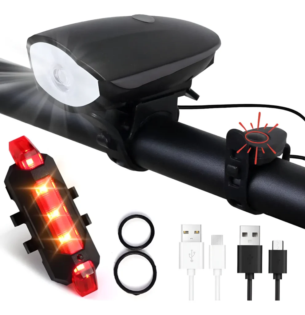 Kit Farol, Buzina e Lanterna Bike Led Recarregável Bicicleta.